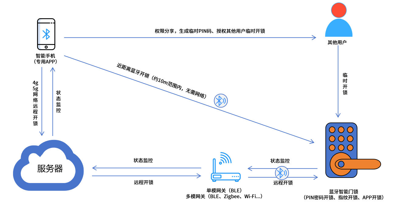 此外,在多模网关可兼容多种通信协议的作用下,户主还可将蓝牙智能门锁无缝接入智能家居系统,实现多设备间的互联互通与协同控制。