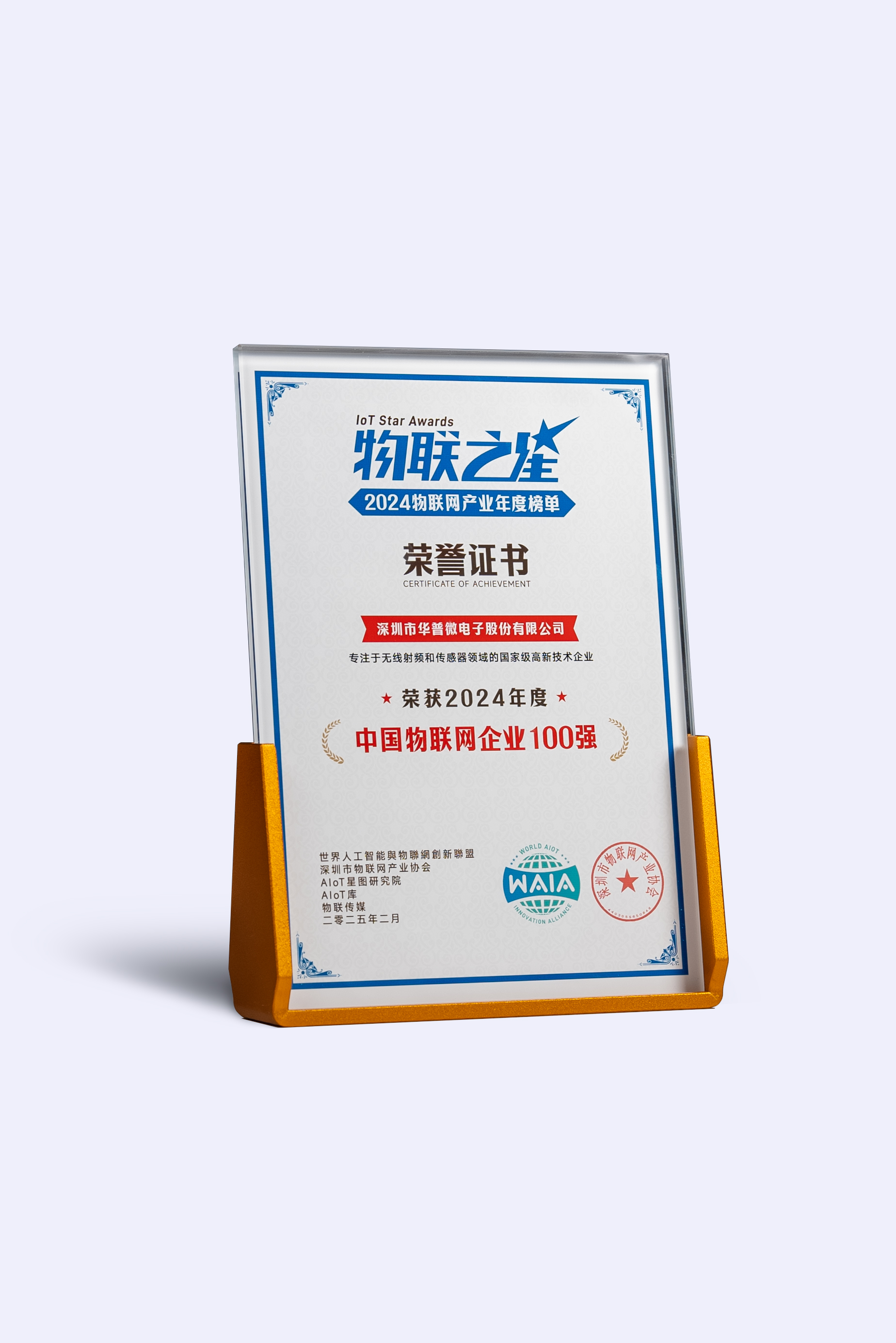 2025年6月17日,上海浦东喜来登由由大酒店,VSport-胜利微受邀参加了由世界智联网创新联盟、深圳市物联网产业协会主办的“2025中国物联网企业出海与创新发展峰会暨‘2024物联之星’年度榜单颁奖典礼”,并一举荣获2024年度“中国物联网企业100强”荣誉证书。